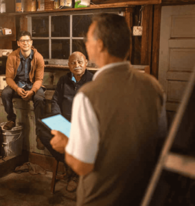 Un grupo de hermanos y hermanas reunidos en un sótano. Mientras un hermano da instrucciones, otro lo mira con cara de escéptico.
