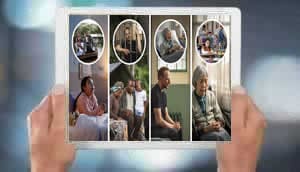 Imágenes de hermanos y hermanas que oran por los demás aunque tienen sus propios problemas: 1. Una niña está sentada en su cama orando; arriba en un círculo se ve a una familia en un bote huyendo de su casa durante una inundación. 2. La familia de la imagen anterior está orando; arriba en un círculo se ve a un hermano preso. 3. El hermano de la imagen anterior está orando en su celda; arriba en un círculo se ve a una hermana mayor hospitalizada. 4. La hermana mayor de la imagen anterior está orando; arriba en un círculo se ve a la niña de la primera imagen sentada en clase mientras el resto de niños celebra un cumpleaños.
