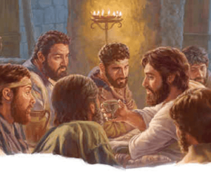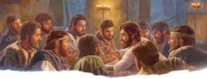 Jesús y sus apóstoles fieles sentados a la mesa durante la Cena del Señor.