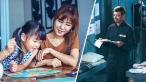 Serie de imágenes: 1. Una madre ayuda a su hijita a hacer un dibujo que anime a un hermano que está preso. 2. El hermano que está preso sonríe cuando ve el dibujo y la carta que le han enviado.