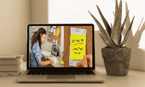 Serie de imágenes: 1. Una hermana escribe una nota mientras está haciendo su estudio personal 2. Coloca la nota en su tablero de anuncios. La nota dice: “Esta semana, amabilidad, Proverbios 15:1”. En lugar de intentar aplicar a la vez todo lo que aprende en su lectura de la Biblia, es mejor ser modesto y centrarse en uno o dos puntos. (Vea los párrafos 13 y 14).