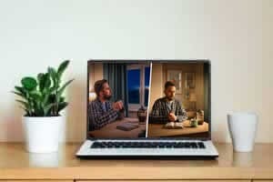 Serie de imágenes: 1. Antes de que salga el sol, un hermano medita sentado en su escritorio con la Biblia abierta y una taza de café. 2. El sol ya ha salido, y el hermano sigue sentado en su escritorio orando largo y tendido.