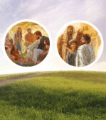 El estudiante de la Biblia del artículo anterior, que ahora es un hermano bautizado y se puso ropa nueva, va por un camino. Serie de imágenes: Jesús demostrando las cualidades del fruto del espíritu. 1. Para alimentar a una multitud, Jesús recibe de un niño unos panes y unos pescaditos. 2. Jesús se sienta y conversa con unos niños. 3. Jesús aguanta apaciblemente cuando le dan bofetadas durante el juicio ilegal que le hicieron.