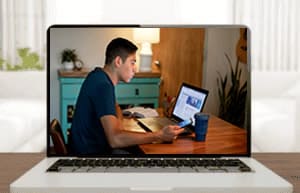 En la imagen se ve que este joven no lo está haciendo de manera apresurada; se está tomando su tiempo porque vemos que tiene ahí un café, la Biblia y el ordenador para mirar información, para que esto cale en su corazón y le ayude a tomar una buena decisión sin prisa.