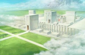El templo de la visión de Ezequiel, situado en una montaña alta, visto de cerca.