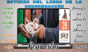 Estudio del Libro de la congregación, 21-27 de noviembre 2022, Lección 28, puntos 1 al 5, Respuestas.