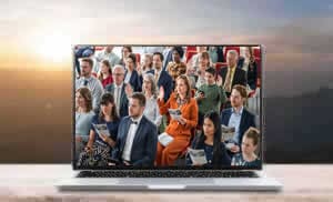 Una hermana levanta la mano durante el Estudio de “La Atalaya”. Otros hermanos y hermanas también levantan la mano.