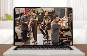 Un hermano trabajando en un taller de autos. Sus compañeros de trabajo miran revistas pornográficas, pero él se niega a hacerlo.