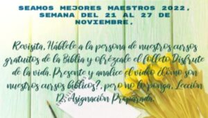 SEAMOS MEJORES MAESTROS: 21-27 de Noviembre 2022, Revisita, Lección 12, Asignación Preparada.