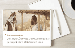 Empiece conversaciones (2 mins.) PREDICACIÓN INFORMAL. La conversación termina antes de que usted pueda hablar de la Biblia (lmd lección 2 punto 4).