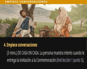 Empiece conversaciones (3 mins.) DE CASA EN CASA. La persona muestra interés cuando le entrega la invitación a la Conmemoración (lmd lección 1 punto 5).