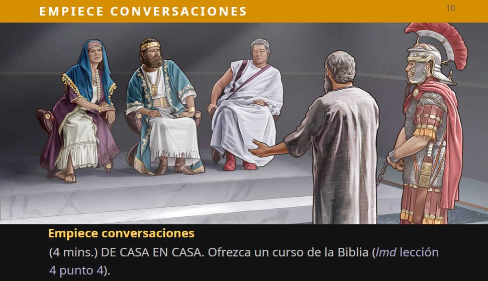 Empiece conversaciones (4 mins.) DE CASA EN CASA. Ofrezca un curso de la Biblia (lmd lección 4 punto 4).