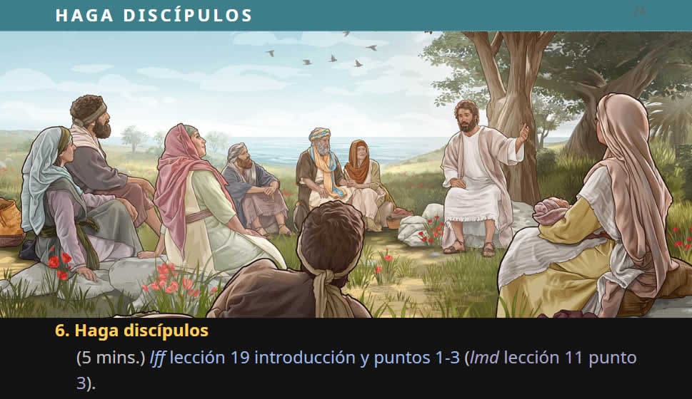 Haga discípulos (5 mins.) lff lección 19 introducción y puntos 1-3 (lmd lección 11 punto 3).