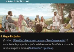 Haga discípulos (5 mins.) lff lección 16 resumen, repaso y “Propóngase esto”. El estudiante le pregunta si Jesús estaba casado. Enséñele a buscar la respuesta por sí mismo (lmd lección 11 punto 4).