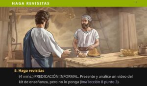 Haga revisitas (4 mins.) PREDICACIÓN INFORMAL. Presente y analice un video del kit de enseñanza, pero no lo ponga (lmd lección 8 punto 3).