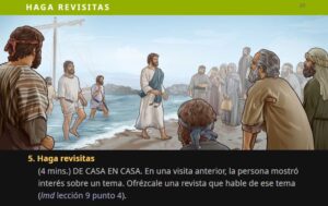 Haga revisitas (4 mins.) DE CASA EN CASA. En una visita anterior, la persona mostró interés sobre un tema. Ofrézcale una revista que hable de ese tema (lmd lección 9 punto 4).