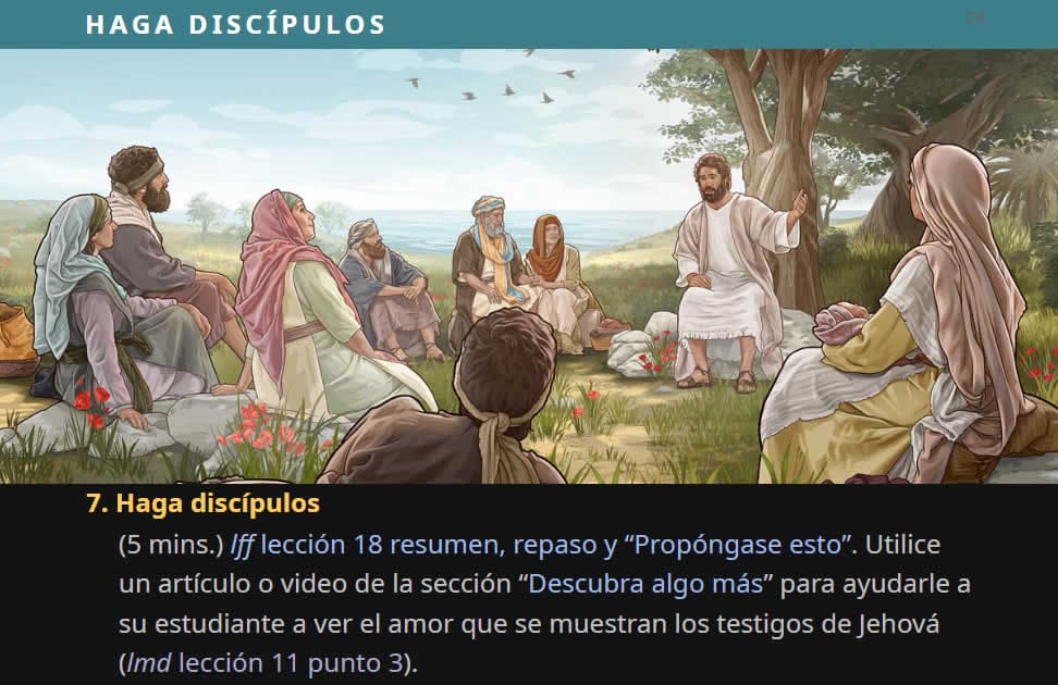 Haga discípulos (5 mins.) lff lección 18 resumen, repaso y “Propóngase esto”. Utilice un artículo o video de la sección “Descubra algo más” para ayudarle a su estudiante a ver el amor que se muestran los testigos de Jehová (lmd lección 11 punto 3).