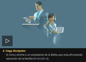 Haga discípulos (5 mins.) Anime a un estudiante de la Biblia que está afrontando oposición de la familia (th lección 4).