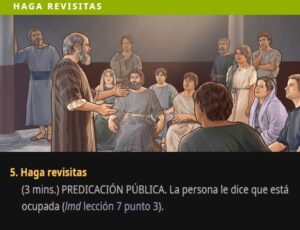 Haga revisitas (3 mins.) PREDICACIÓN PÚBLICA. La persona le dice que está ocupada (lmd lección 7 punto 3).