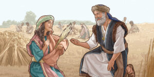 Estas palabras de Boaz no son fruto de casualidad sino del trabajo y del empeño de Rut en hacer las cosas bien y de forma respetuosa. Rut se habrá sentido profundamente conmovida por las palabras de Boaz y por ser considerada como una mujer excelente. De hecho, en el gesto que hace con la mano al llevársela al corazón como vemos en la ilustración refleja este mismo hecho.