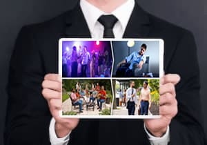 Abajo, a la izquierda, vemos un grupo de amigos disfrutando de una sana reunión, música sencilla y naturaleza: la luz estable de los justos.