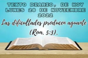 TEXTO DIARIO, Lunes 28 de noviembre 2022, Las dificultades producen aguante (Rom. 5:3).