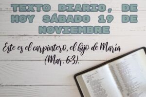 TEXTO DIARIO, Sábado 19 de noviembre, Este es el carpintero, el hijo de María (Mar. 6:3).