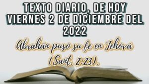 TEXTO DIARIO, Viernes 2 de diciembre, Abrahán puso su fe en Jehová (Sant. 2:23).
